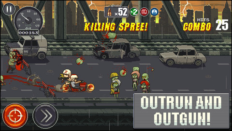 由Chillingo发行的一款休闲小游戏,在游戏中,你将扮演一名摩托车手,一路狂飙冲出僵尸的围追堵截。在逃跑过程中你需要开动脑筋,巧妙利用路上的障碍和车辆减缓僵尸的前进速度,当然,光逃跑自然是不够刺激了,你还可以边开摩托边向僵尸射击。僵尸突围游戏评测