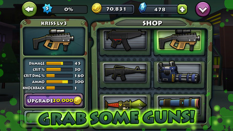 迷你英雄:痞子召唤(Call of Mini Brawlers)是一款横版动作游戏。本作是来自开发商捶地泥(Triniti)的作品,游戏采用虚拟按键进行操作,左侧方向键控制人物行进,右侧射击键可以使用枪械和棍棒,所谓乱棍打死老师傅,但面对的可是不知道会从哪里冒出来就咬一口的僵尸,游戏每个关卡有杀死固定僵尸数量的任务。
