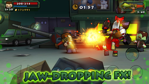 世界末日都要过去了,这苦逼的方块脸还在苦逼的杀着僵尸。《迷你英雄:痞子召唤》可以看成是《迷你英雄:背水一战》的同类作品,只不过这次玩家要下到街道里跟僵尸们进行面对面的血腥肉搏。游戏是 3D 横版游戏,熟悉的"布娃娃"造型保证了游戏的打击感。