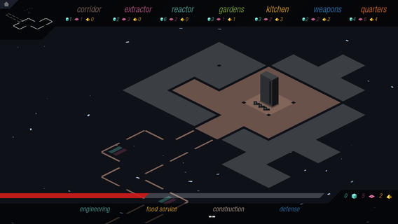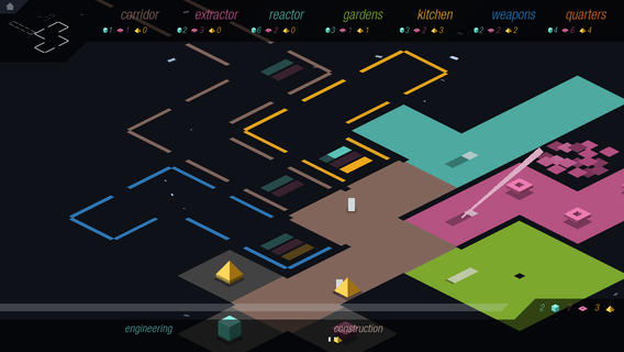 游戏的操作看似简单,但是十分考验玩家们的空间感,你需要协调好空间的延伸创建和资源的探索管理,而空间扩张和防御设置将会是游戏的关键点。