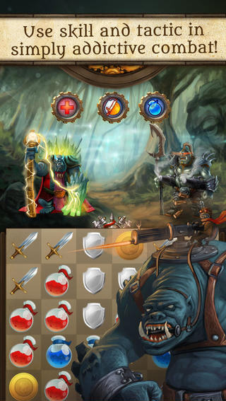 游戏的玩法也非常简单,只要把至少3个相同类型且连接在一起的图标用手指连接起来便可发动图标能力,连接路线越长图标越多,能力效果就越显著,横着竖着斜着连接都可以。连接过后的图标会被消除,然后由顶上的图标落下顶替其位置。在游戏过程中可能会有想要使用自己想发动的技能却因为没法连接图标的情况,这时候就可以先分析一下目前有哪些可连接的区域,消除过后会出现哪种情况,再选择一种对自己最有利的方式来连接,这就是游戏丰富的策略性。战斗结束后累计的经验会让我们的战士们升级,每个战士都有其独特的魔法技能,每通关地图上的一个点之后都能获得一个强力战士,只有升级得更强才能打败更强的敌人获得更多的战士。