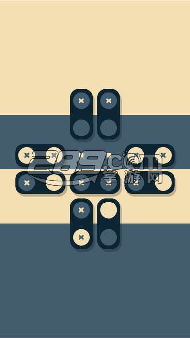 进入游戏后你会发现我们的挑战场景被分割成不同颜色,与之对应的是砖块上会携带特定颜色的圆点。玩家要做的就是通过点与滑的操作,让这些砖块在有限的空间内腾转挪移,将它们携带的圆点送到与之颜色匹配的区域内,达成所有目标后方可过关。