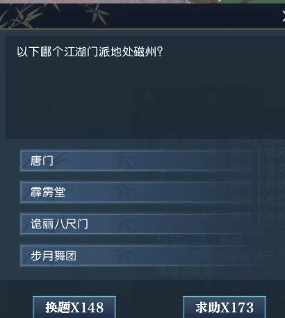逆水寒科举活动中有一题名为以下哪个江湖门派地处磁州,相信很多不了解游戏的玩家都不知道到底选什么吧、小编在这里为大家带来了以下哪个江湖门派地处磁州的答案,一起来看一看吧。