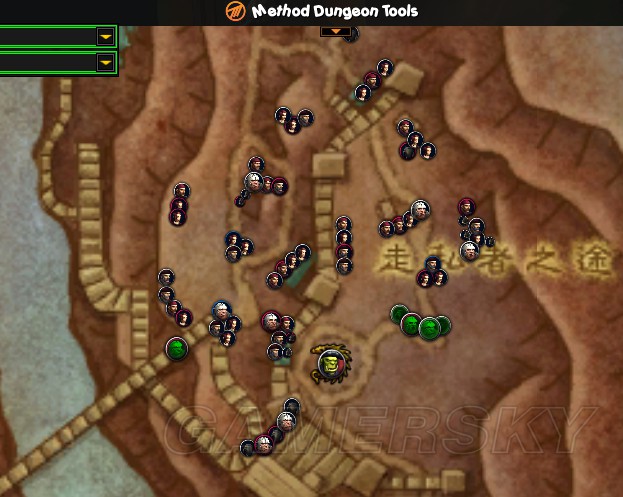 左右两条路都可以走,血誓污染者不吃破胆,但吃吹风,迎头痛击CD时可以用吹风打断技能。图腾出来可以用裂伤和月火打掉,也可以拉开即可避免图腾伤害。