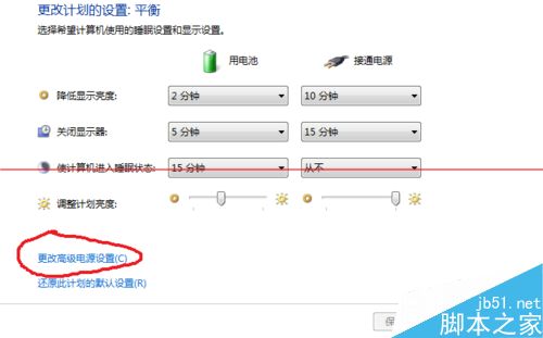 2、然后点击后面的“更改计划设置”选项,弹出如图界面,然后选择“更改高级电源设置”